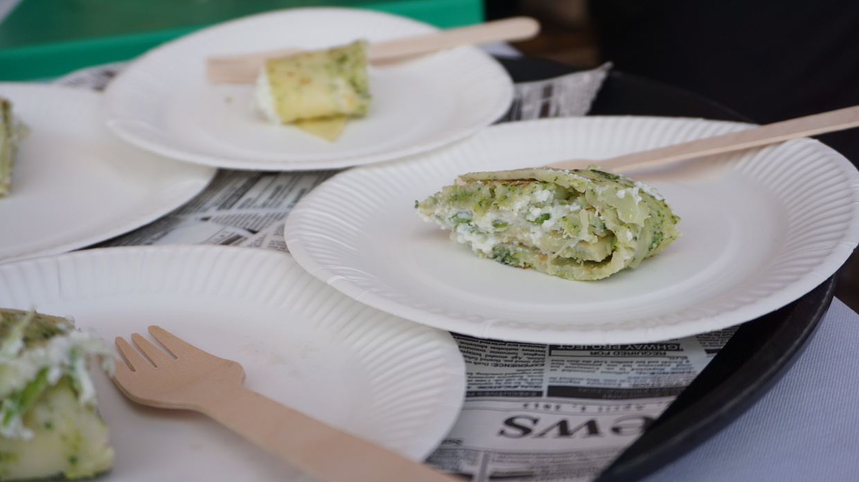 Pudimos degustar diferentes platos de una comida vegetariana y con productos de nuestro agromercado.